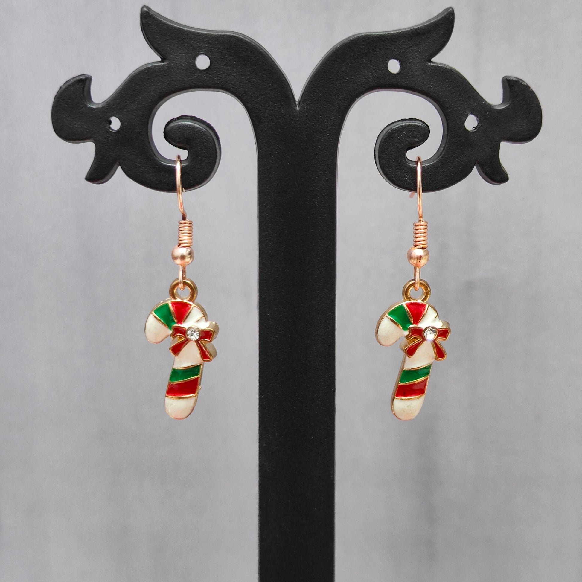Candycane Rose Golden Christmas Pendant Set (Necklace & Earrings)