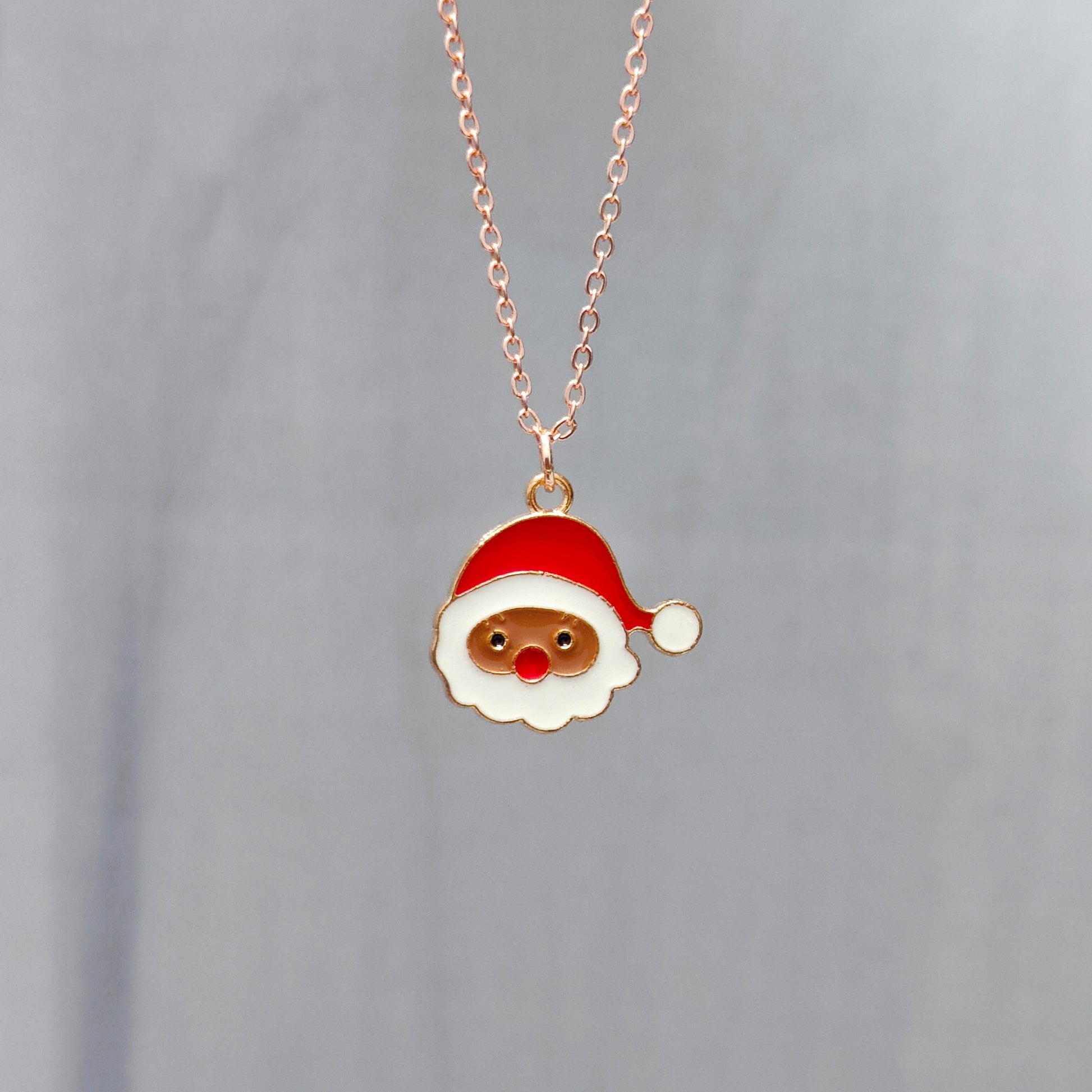 Cute Santa Face Rose Golden Christmas Charm Necklace