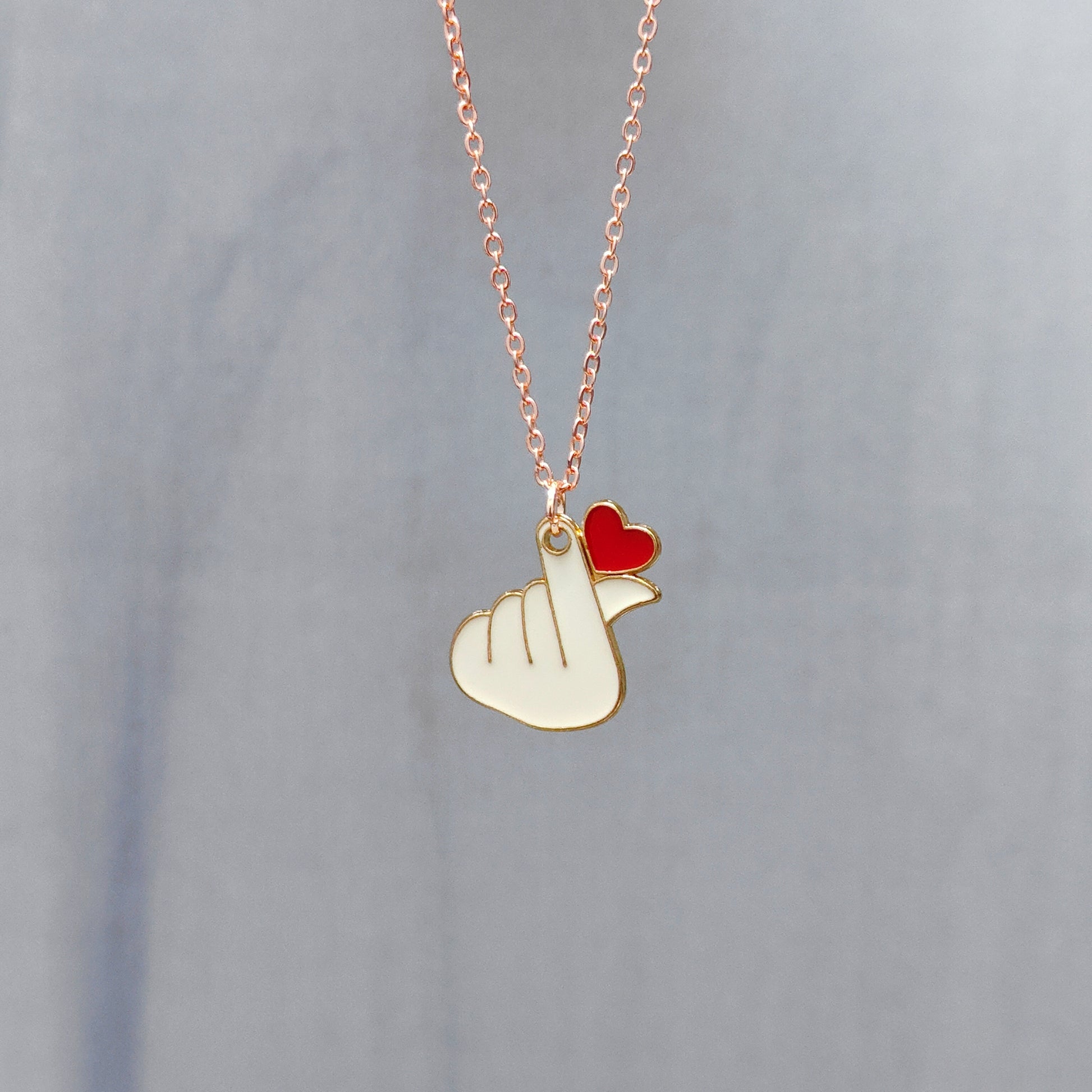 Finger-Heart Saranghae Rose Golden Christmas Pendant Set (Necklace & Earrings)
