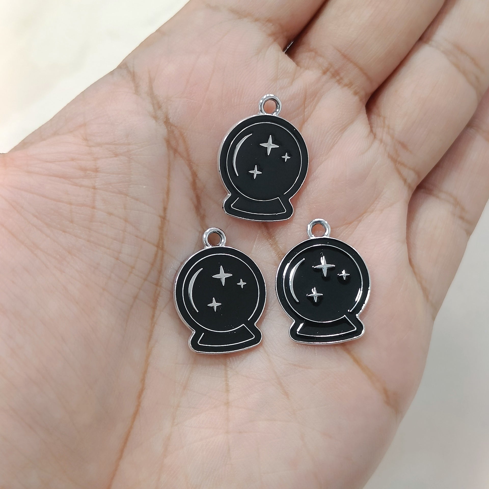 Gothic Black Crystal Ball Metal Charms