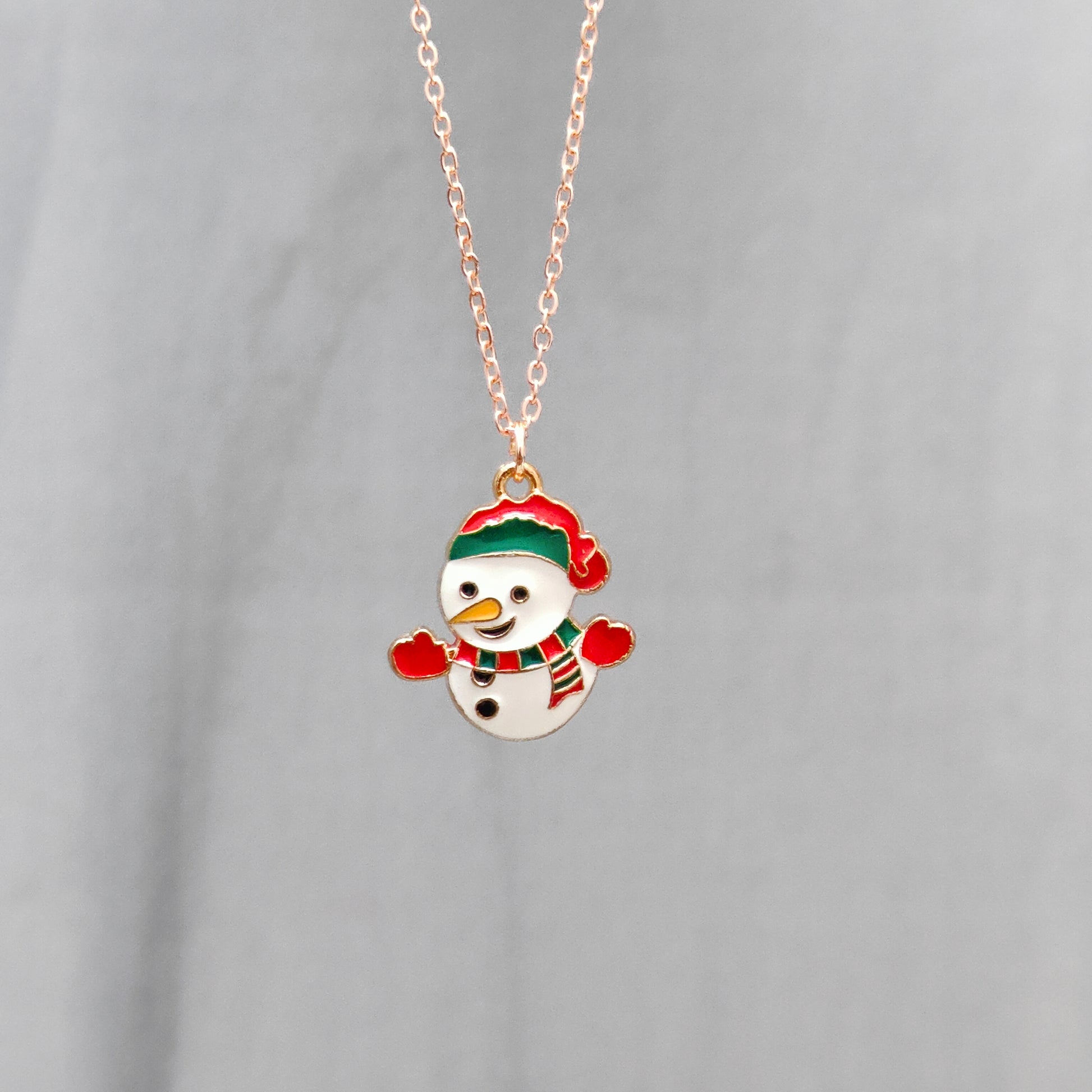 Happy Snowman Rose Golden Christmas Pendant Set (Necklace & Earrings)