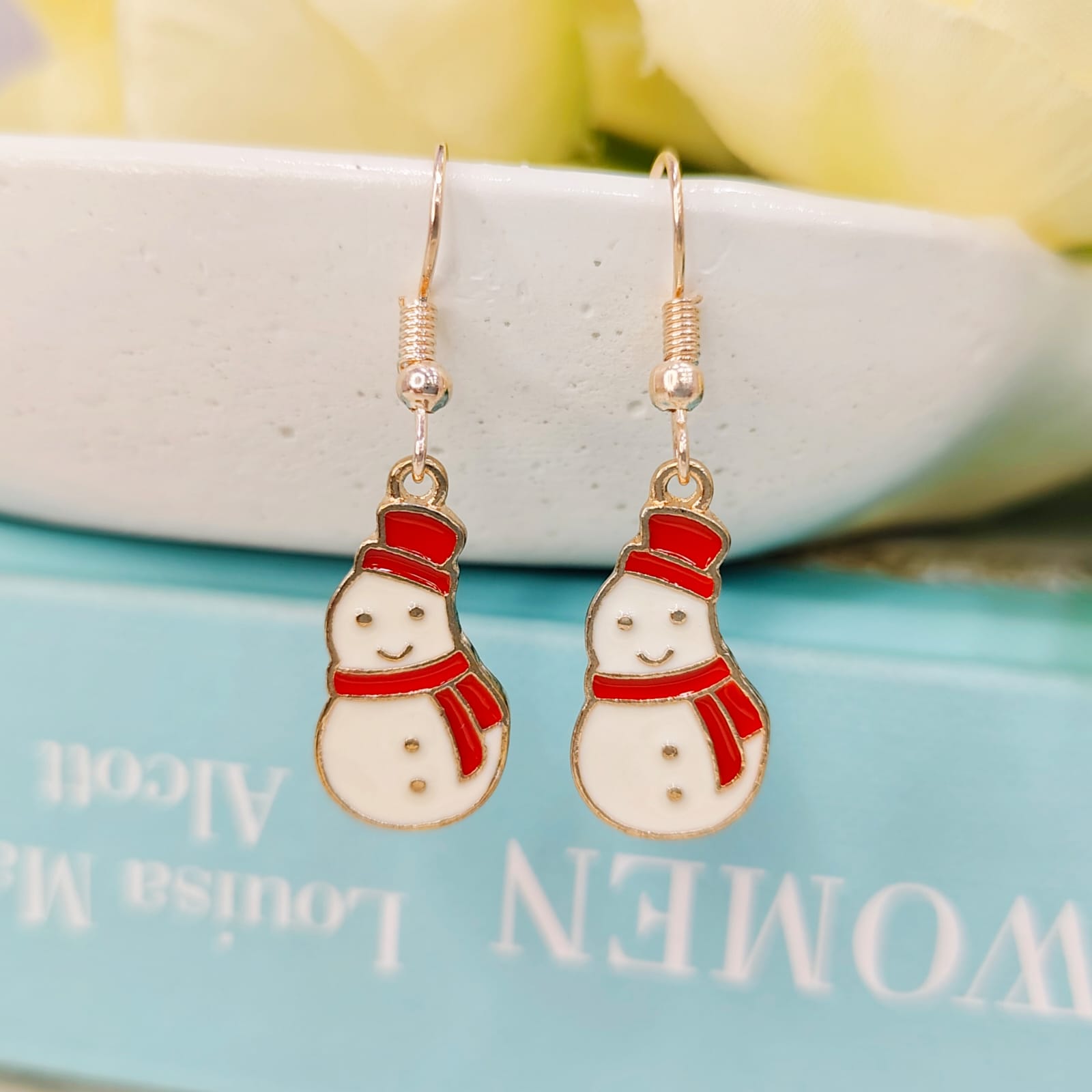 Mini Smiling Snowman Rose Golden Christmas Earrings