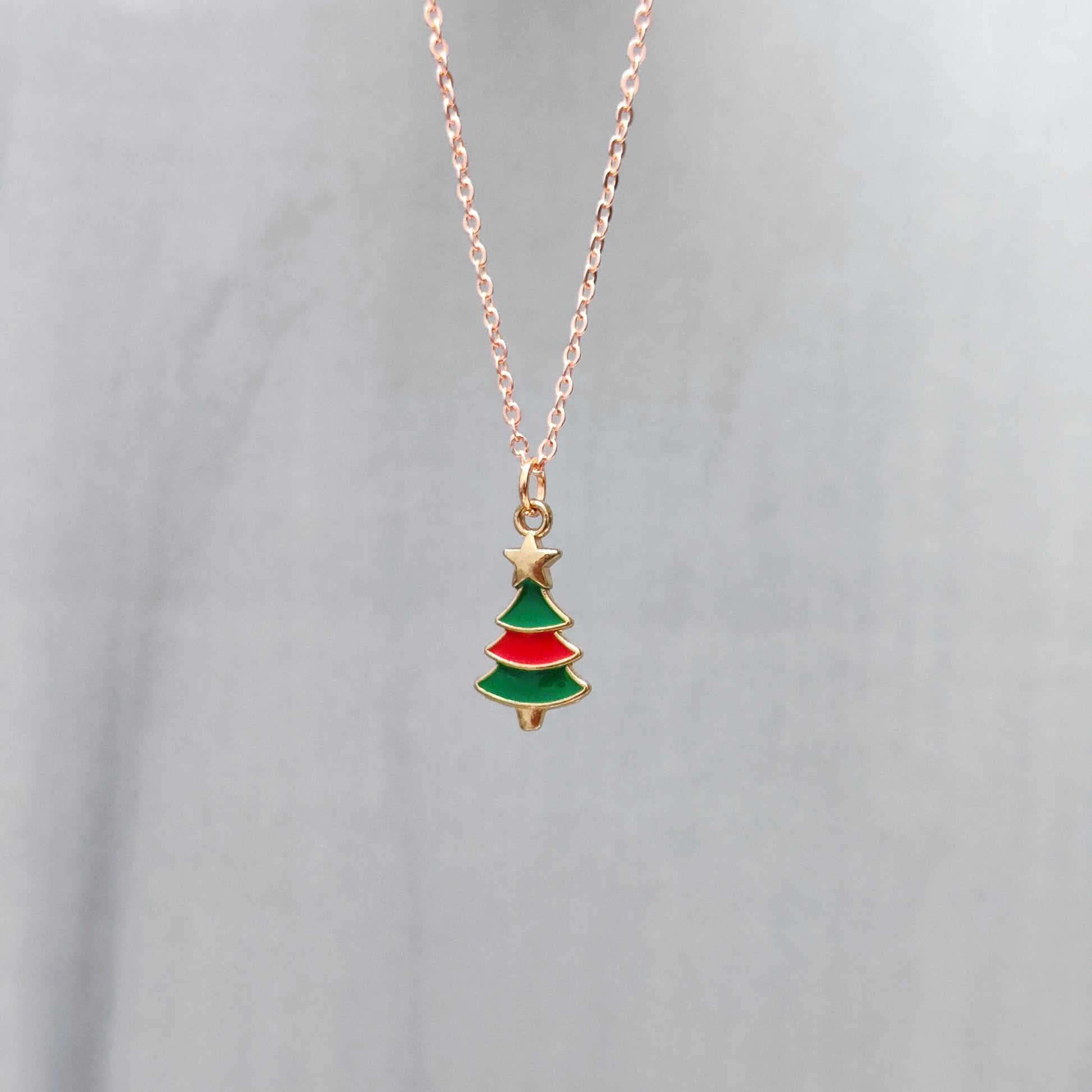Mini Xmas Tree Rose Golden Christmas Charm Necklace