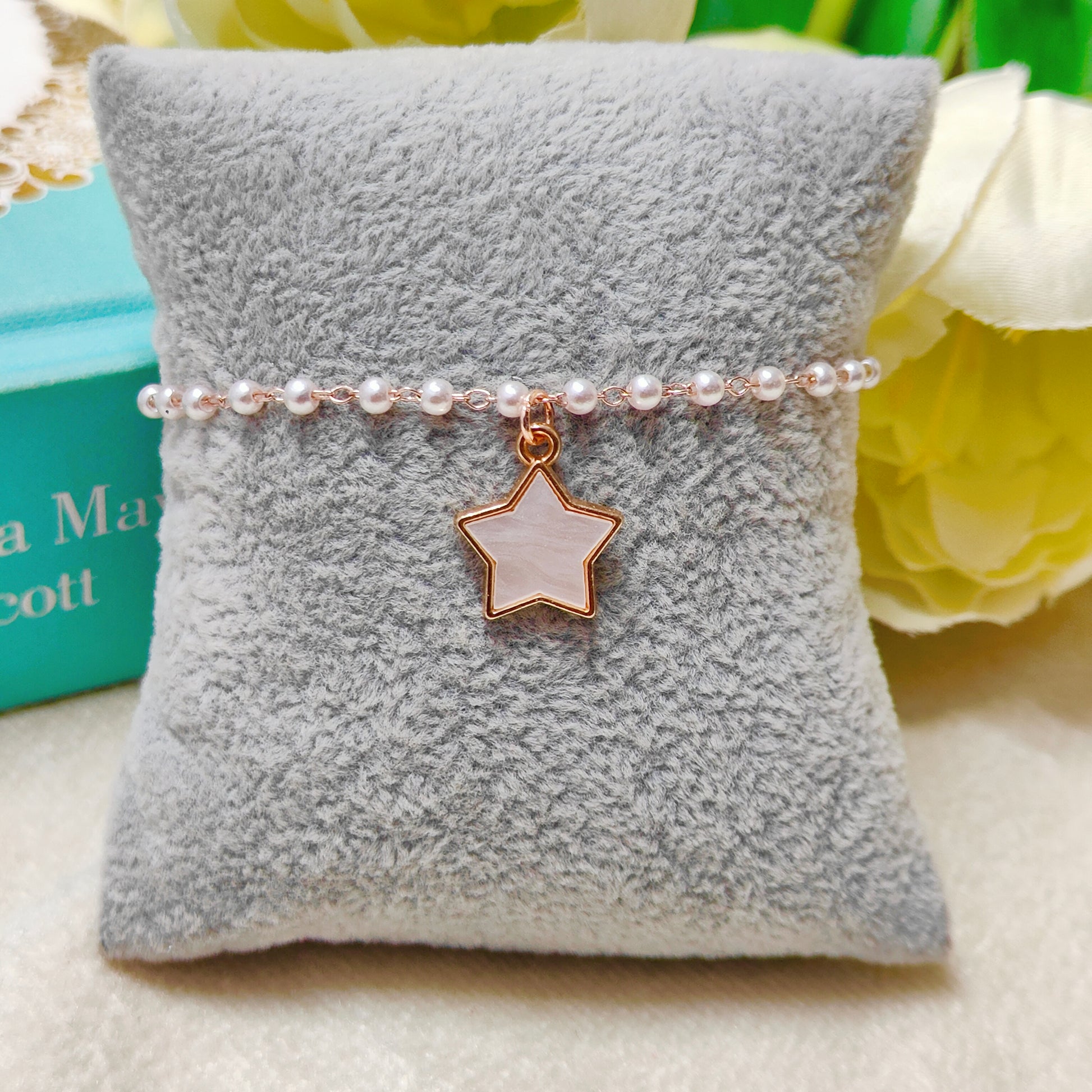 Pearl-Finish White Star Rose Golden Christmas Pearl Chain Bracelet