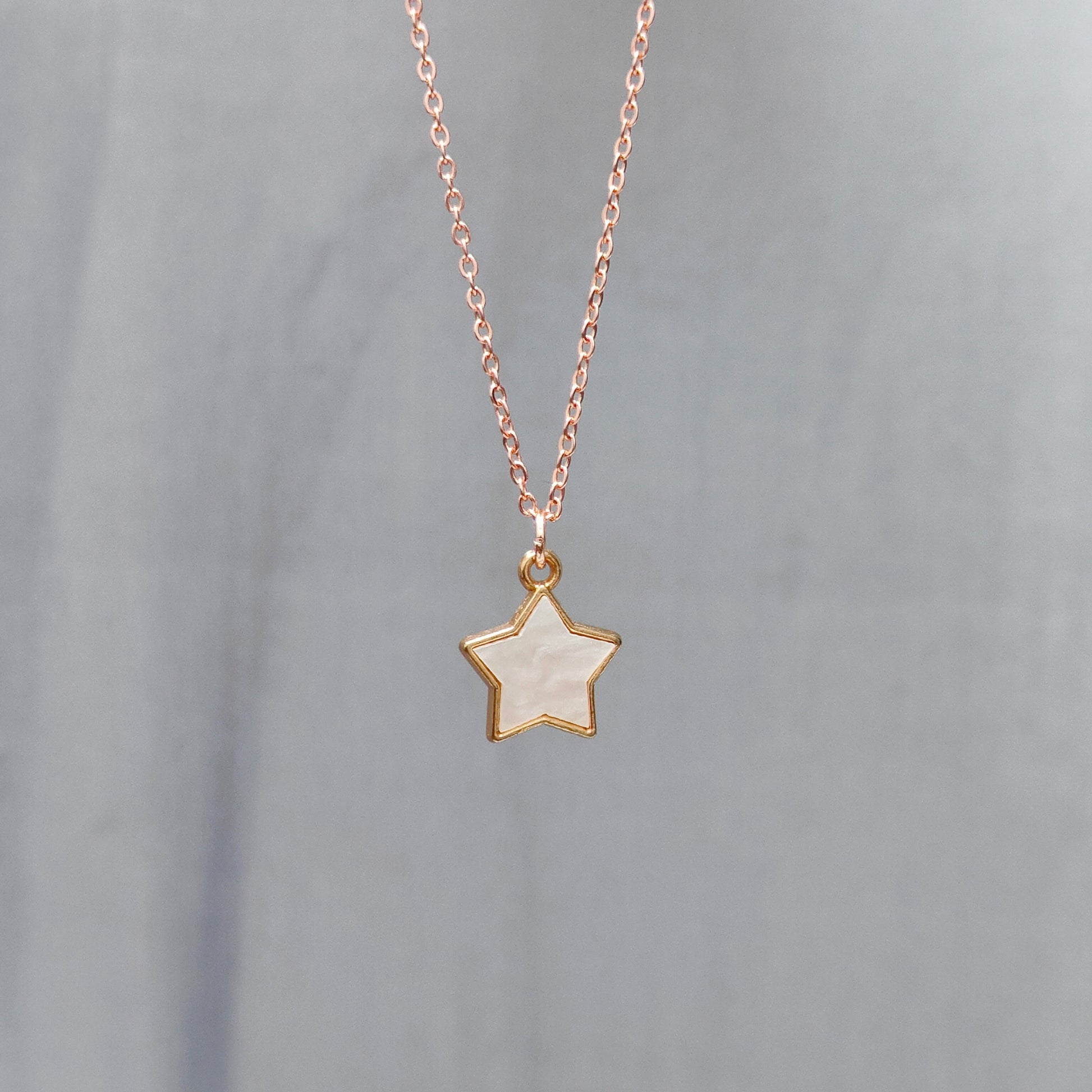 Pearl-Finish White Star Rose Golden Christmas Pendant Set (Necklace & Earrings)