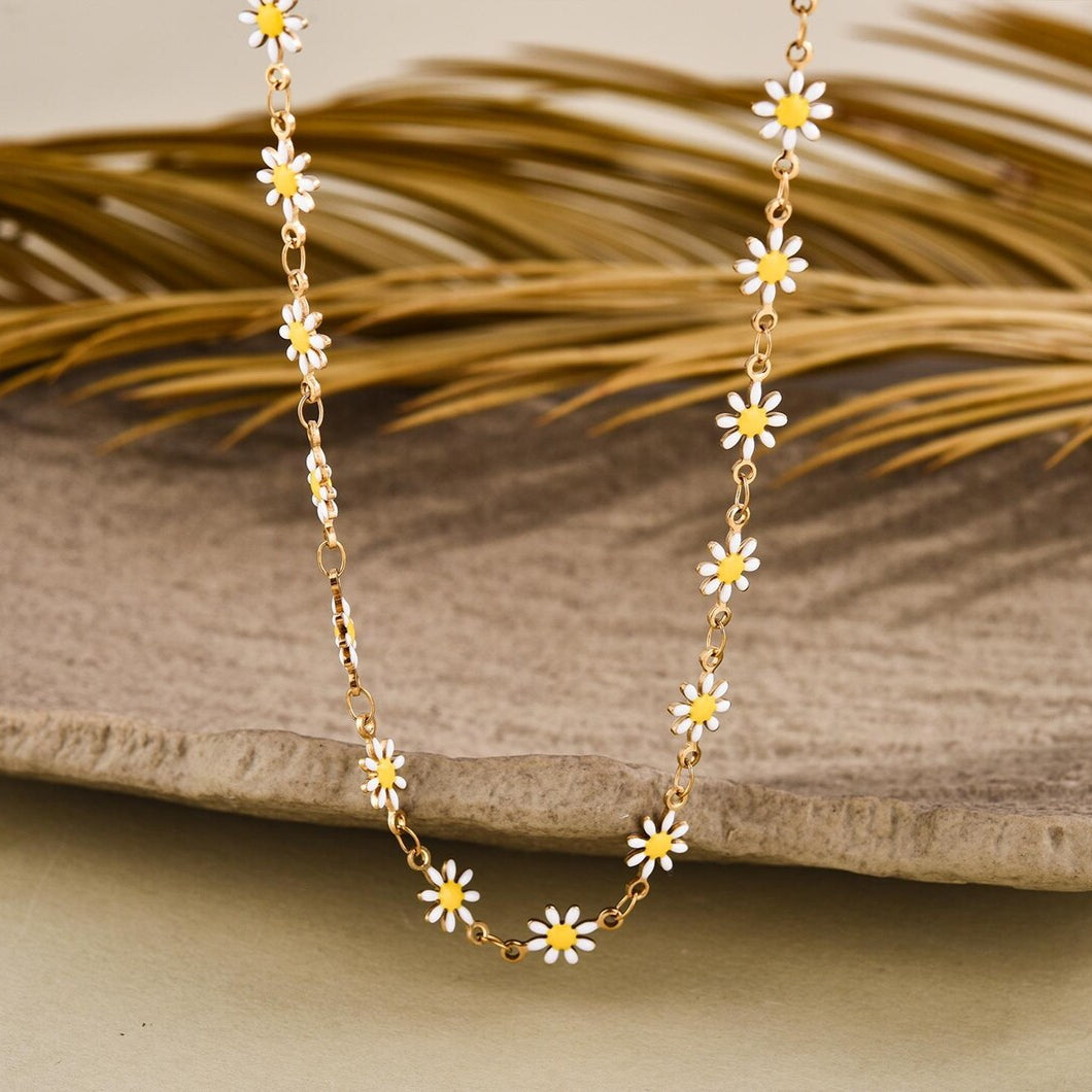✦ High quality 18K gold-plated golden 8-petal enamel daisy motif chain with a protective anti-tarnish & anti-rust coating for enduring appeal.