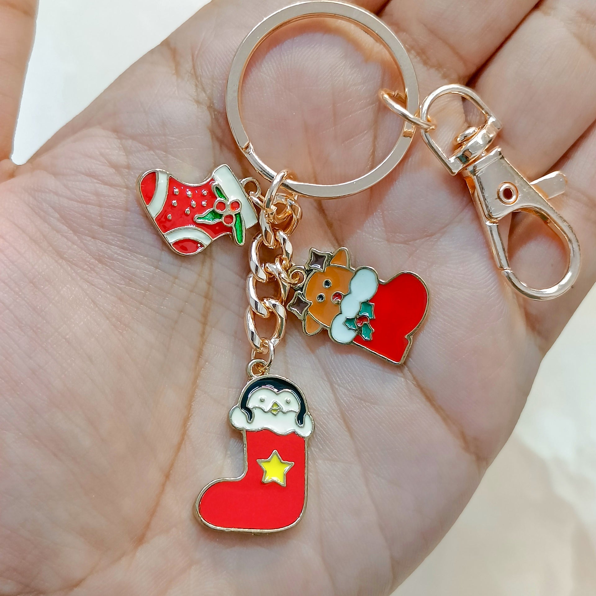 Rose Golden Three Charms Combo Christmas Bag Charm Keychain (Design K38)