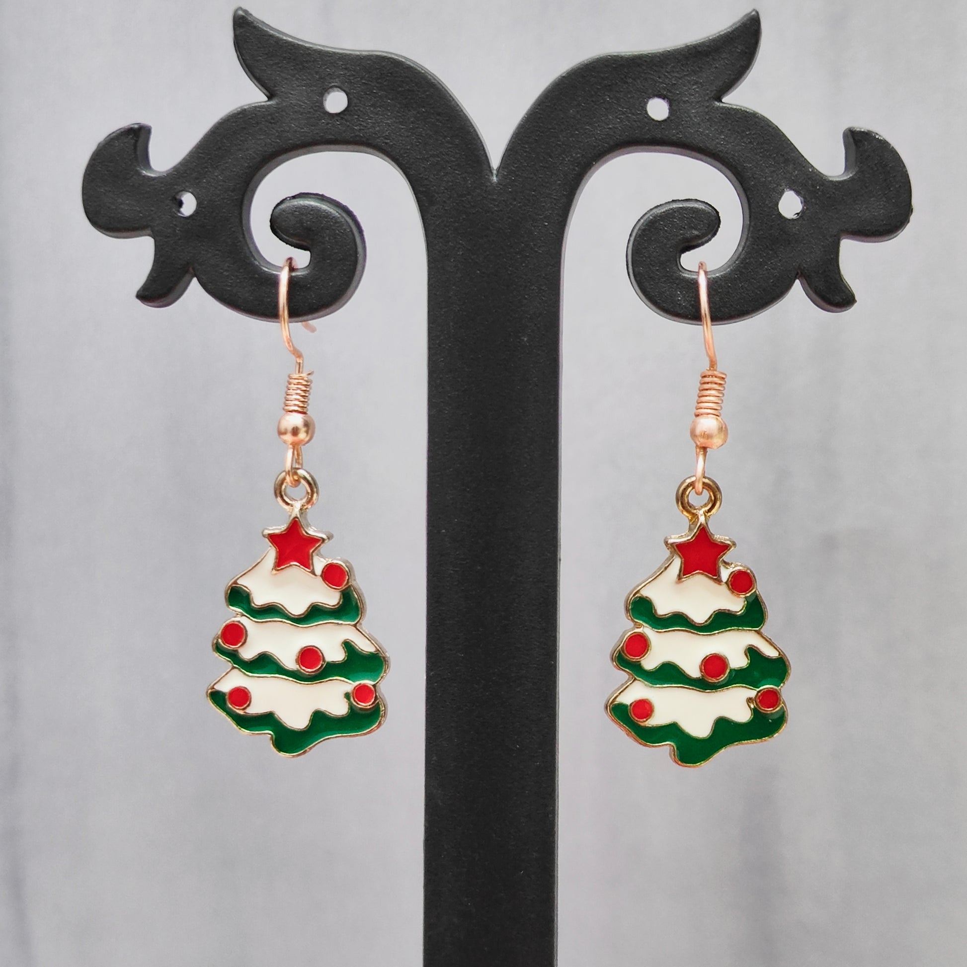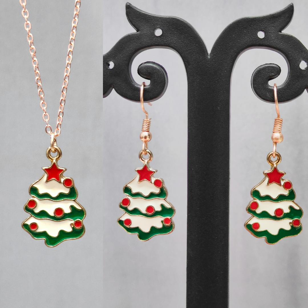 Snowy Xmas Tree Rose Golden Christmas Pendant Set (Necklace & Earrings)