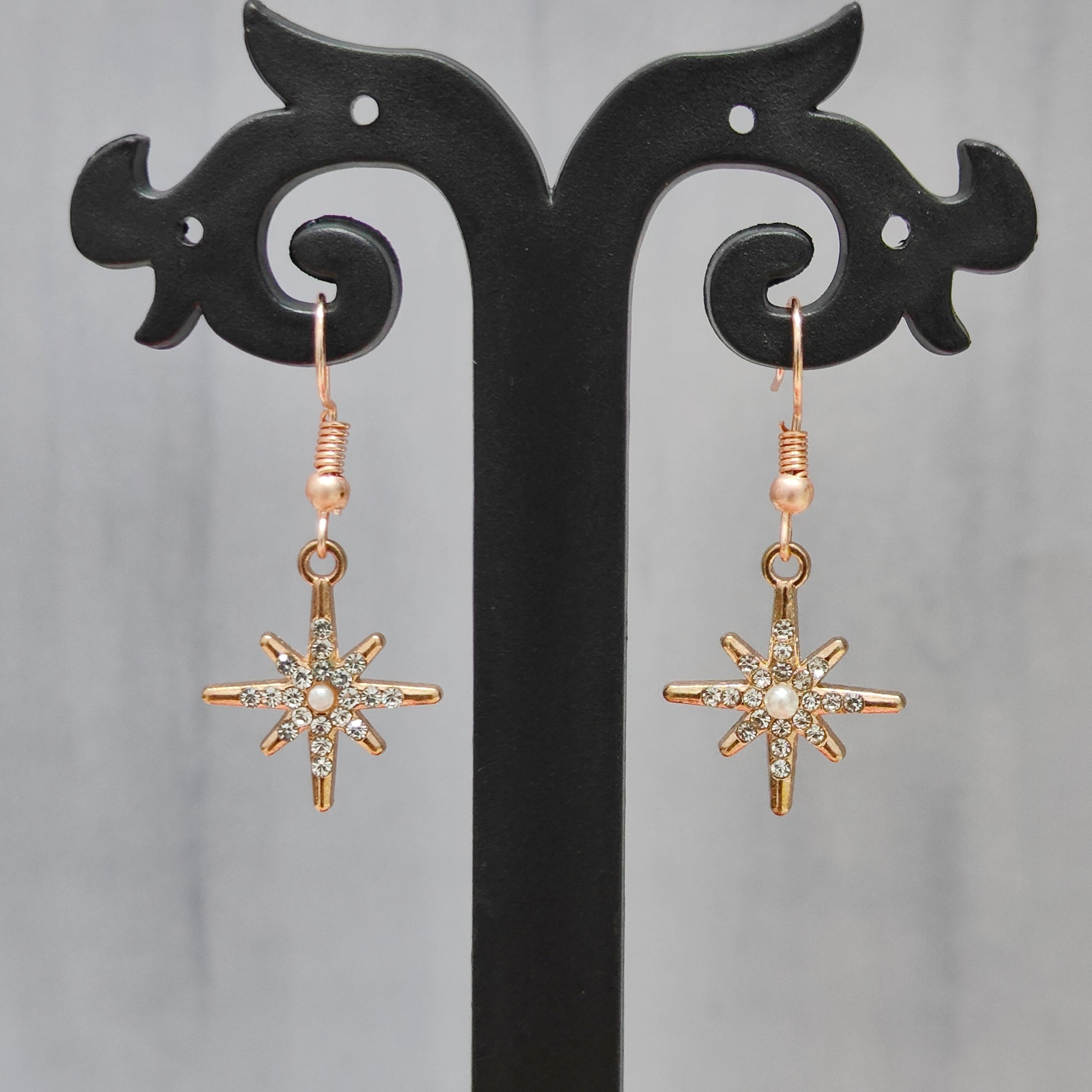 Studded Snowflake Rose Golden Christmas Pendant Set (Necklace & Earrings)