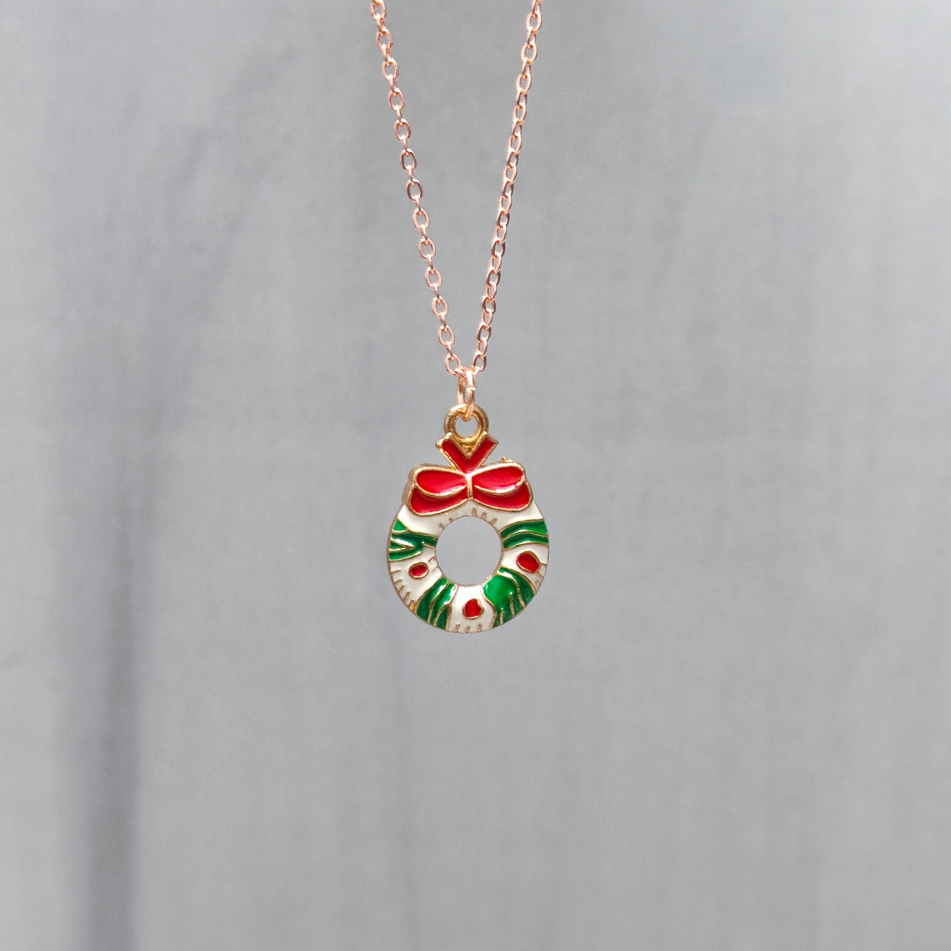 Wreath Rose Golden Christmas Pendant Set (Necklace & Earrings)